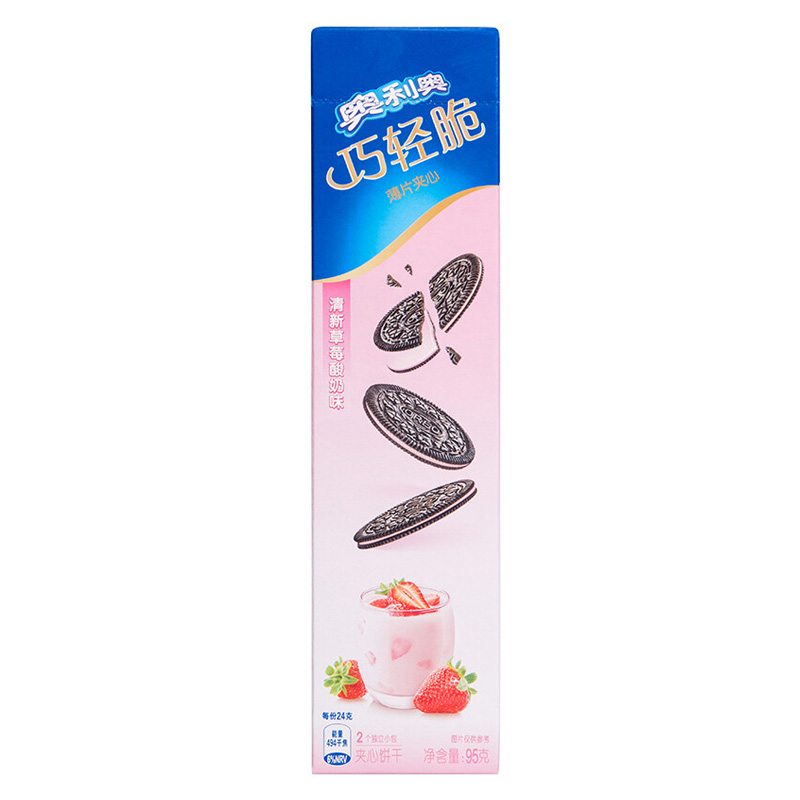 奥利奥(Oreo) 巧轻脆 草莓酸奶味薄片夹心饼干 95g
