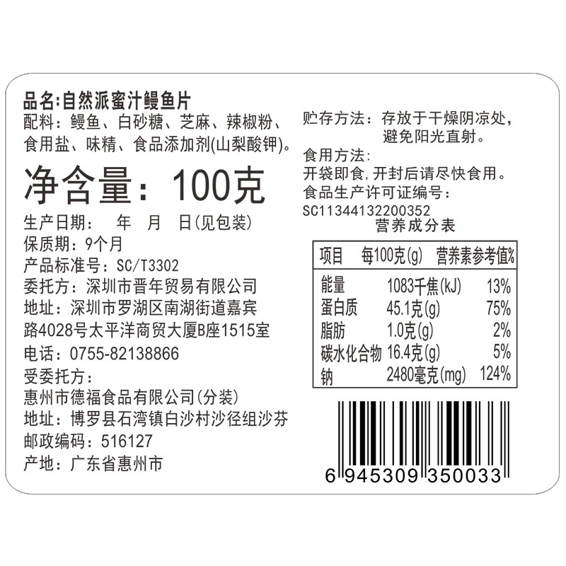 自然派 蜜汁鳗鱼100g